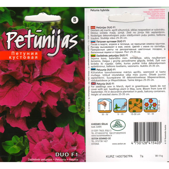 -20% Ātrais skats Vēlmju saraksts Salīdzināt Pievienot grozam Petūnijas DUO Burgundy F1 (KS) * 1,24 € Standarta cena 1,55 € Cena